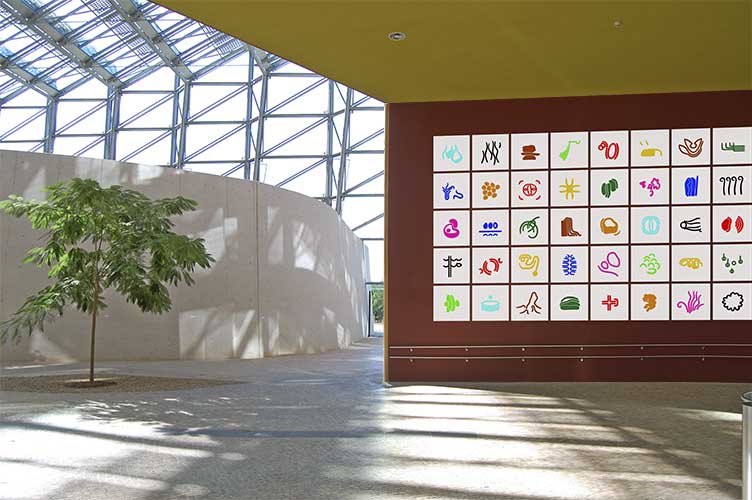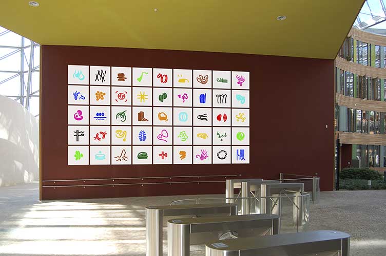 Das Archiv der Zeichen, Kunst am Bau Entwurf für das Foyer und die Bibliothek des Bundesumweltamtes Dessau, 2002 | Zeichentafeln, Emaille | ||||||||
