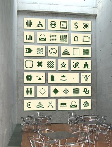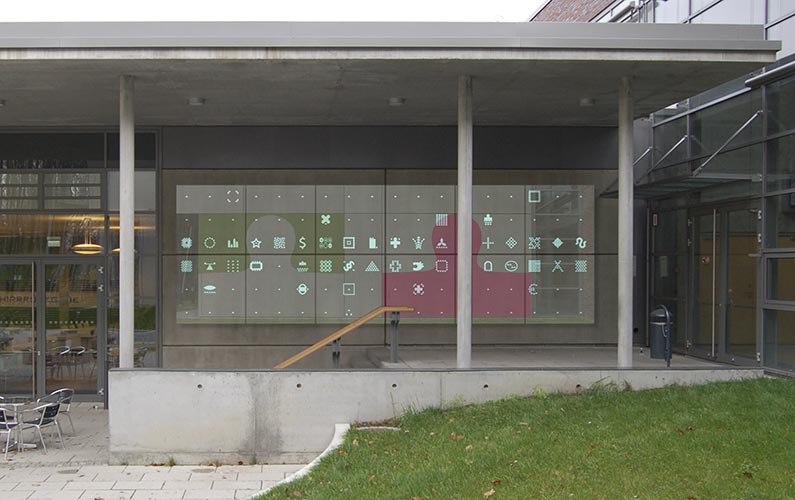 Zeichenentwicklung, Kunst am Bau Entwurf für das Foyer, das Sprachenzentrum und den Außenraum der Uni Potsdam, Standort Griebnitzsee, 2008 | |||||||||