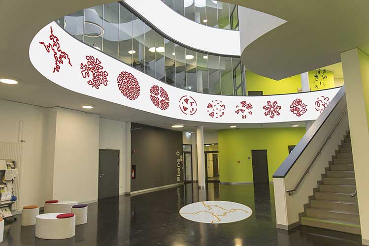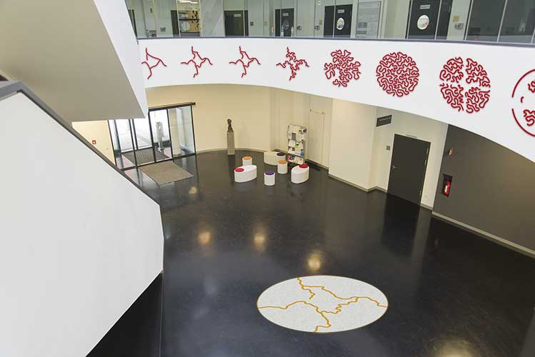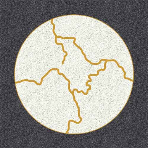 Bifurkation, Kunst am Bau für das Foyer der Fakultät Lebenswissenschaften der Humboldt-Uni Berlin, 2014 | Bodenintarsie, Darstellung der Orinoco-Bifurkation | Strukturentwicklung ausgehend von der Orinoco-Bifurkation | ||||||||