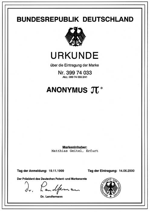 Der Name ANONYMUS PI ist eine patentrechtlich geschützte, eingetragene Marke.