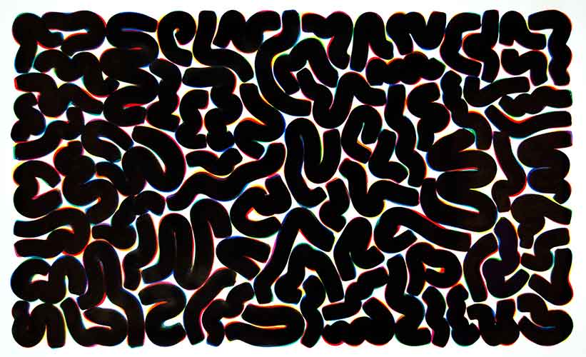 Tusche-Pinselzeichnung, 9 Farbtöne (ohne schwarz) auf Papier, 150 x250 cm, 2006